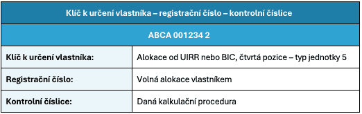 Kód vlastníka – sériové číslo – kontrolní číslice